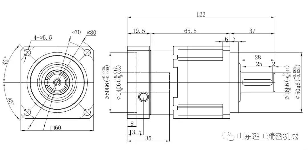 例如這樣一個(gè)圖紙,第一個(gè)接口是減速機(jī)與伺服電機(jī)的接口,這個(gè)通常是需要定制的,減速機(jī)生產(chǎn)廠家會根據(jù)客戶選擇的伺服電機(jī)的接口來定制減速機(jī)的接口,所以在和減速機(jī)供應(yīng)商溝通的時(shí)候,你需要提供伺服電機(jī)的接口給他們。