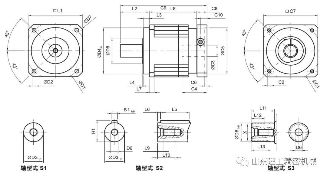 例如這樣一個(gè)圖紙,第一個(gè)接口是減速機(jī)與伺服電機(jī)的接口,這個(gè)通常是需要定制的,減速機(jī)生產(chǎn)廠家會根據(jù)客戶選擇的伺服電機(jī)的接口來定制減速機(jī)的接口,所以在和減速機(jī)供應(yīng)商溝通的時(shí)候,你需要提供伺服電機(jī)的接口給他們。